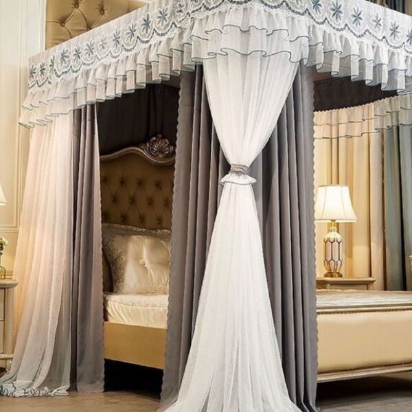 Elevate your bedroom with the EleganceCanopy 4-Post Mosquito Net. Immerse yourself in the lap of luxury as the finely crafted mesh envelops your sleeping area, safeguarding you from mosquitoes and other pests. The four sturdy posts lend an air of grandeur to your space, and the thoughtfully designed entrance adds a touch of convenience. Transform your sleeping quarters into a refined sanctuary with this exquisite mosquito net.